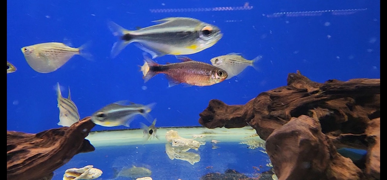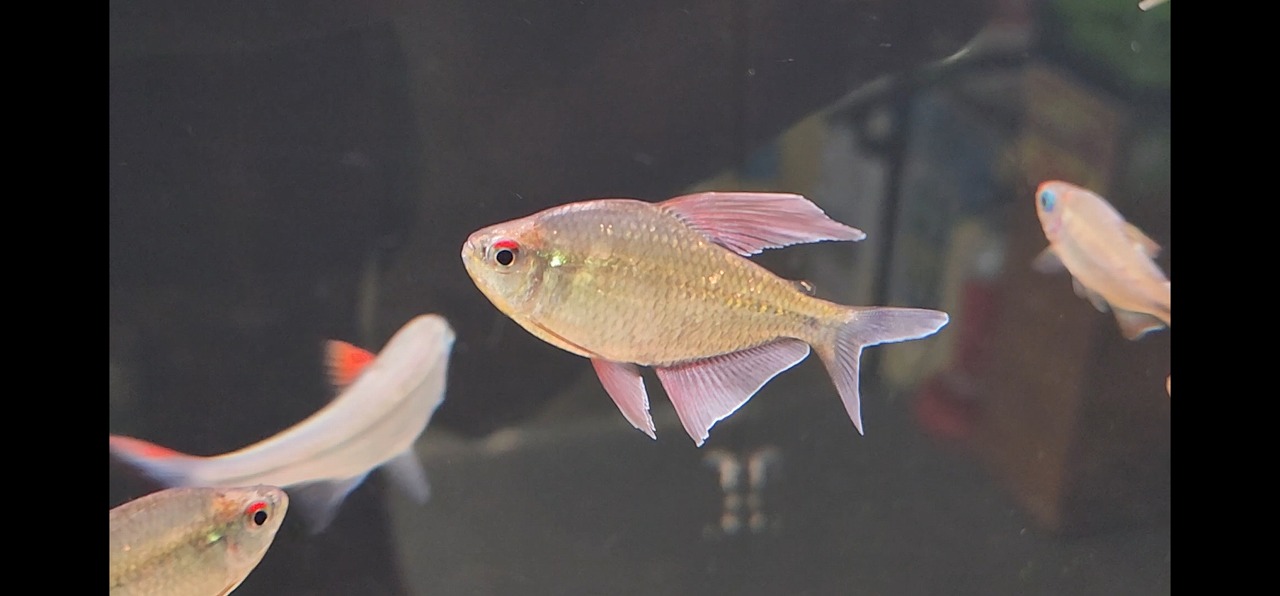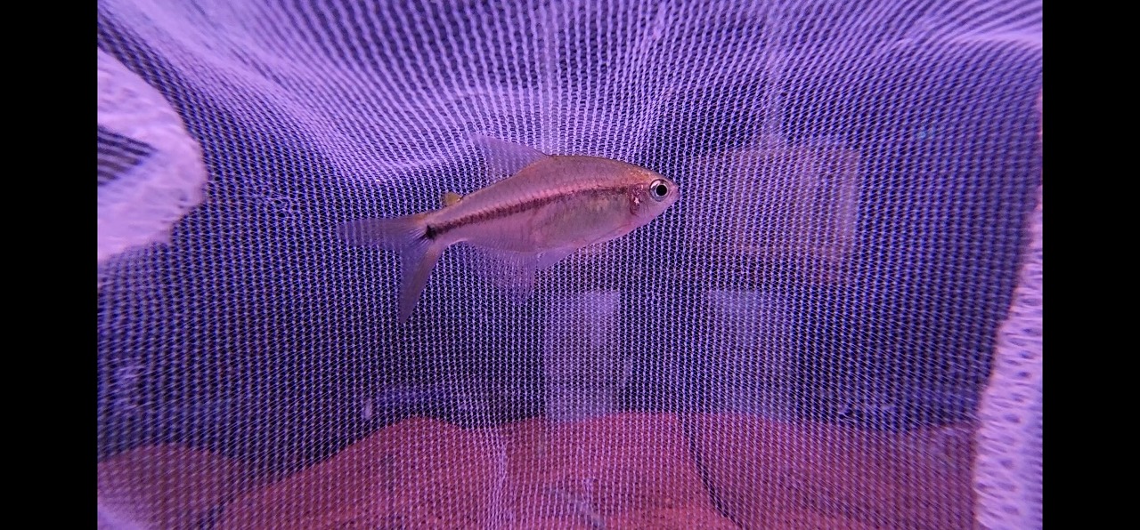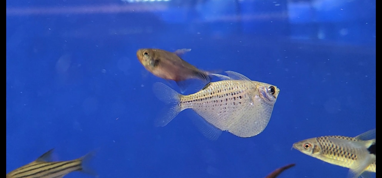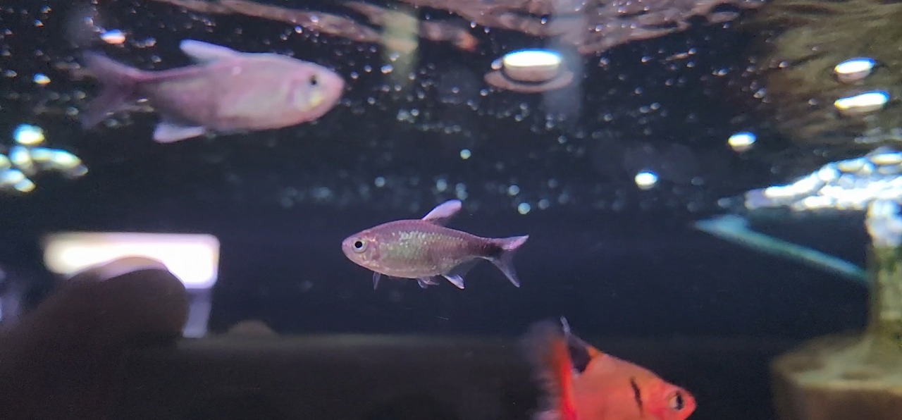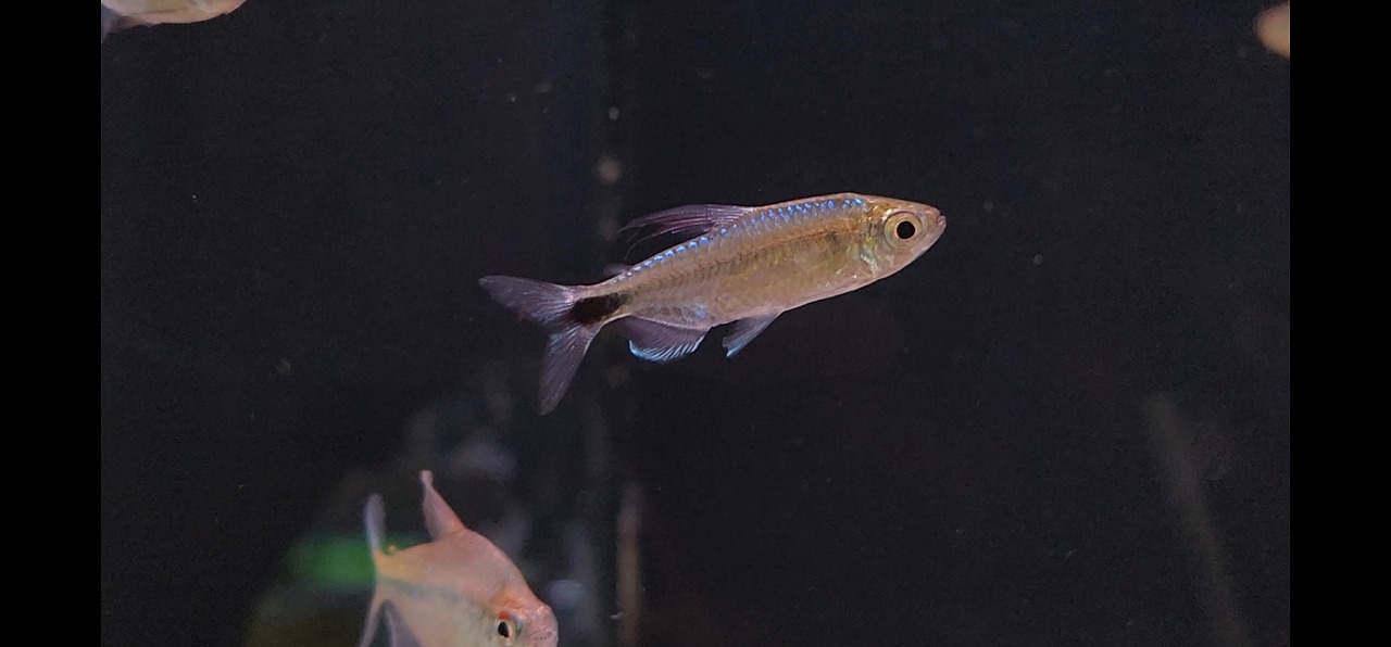 パッと見は地味なテトラですが、実は動くと青い鱗がギラギラする珍カラ。