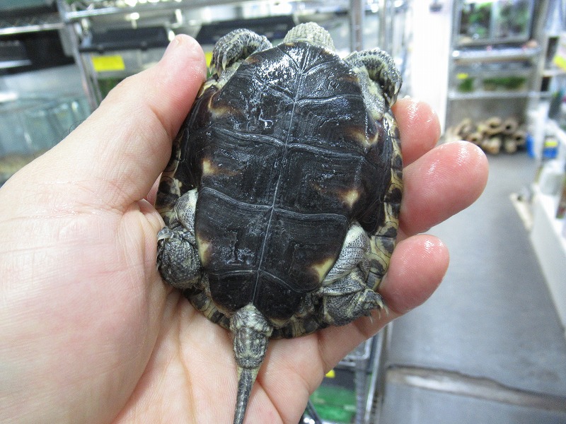 いつも忘れた頃に入荷するイレギュラーな存在のユーラシアイシガメ。ヨルダン産の国内飼い込み。分布域による個体差もあるようですがこの個体は縁甲板の黒斑が大柄でくっきり出てます。