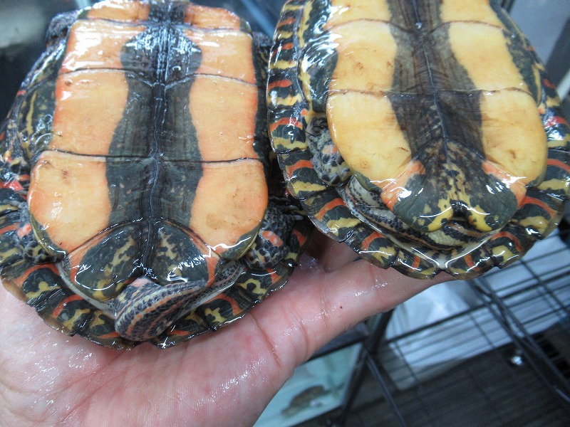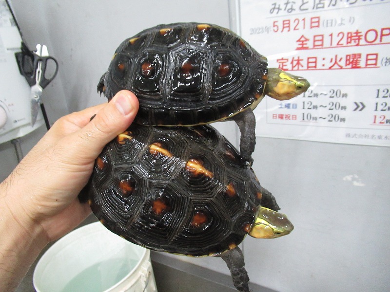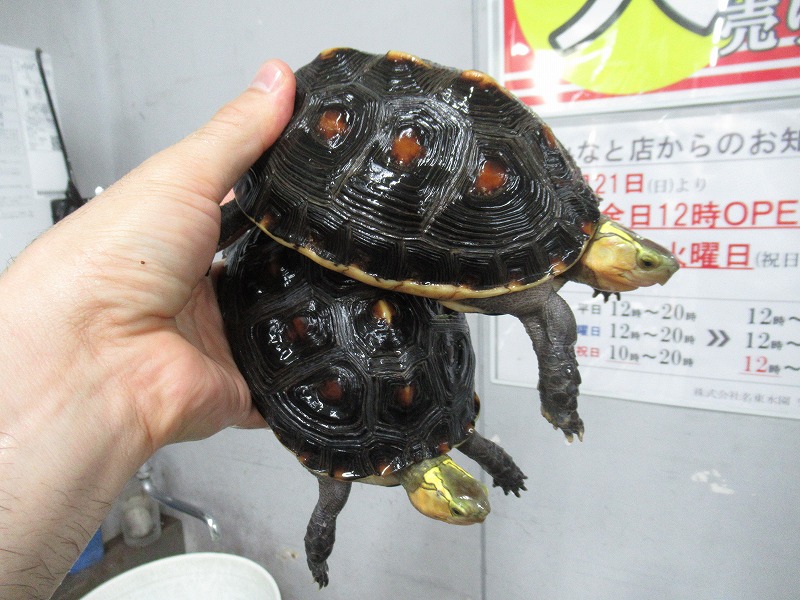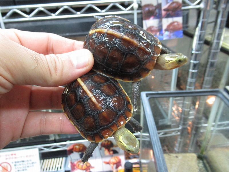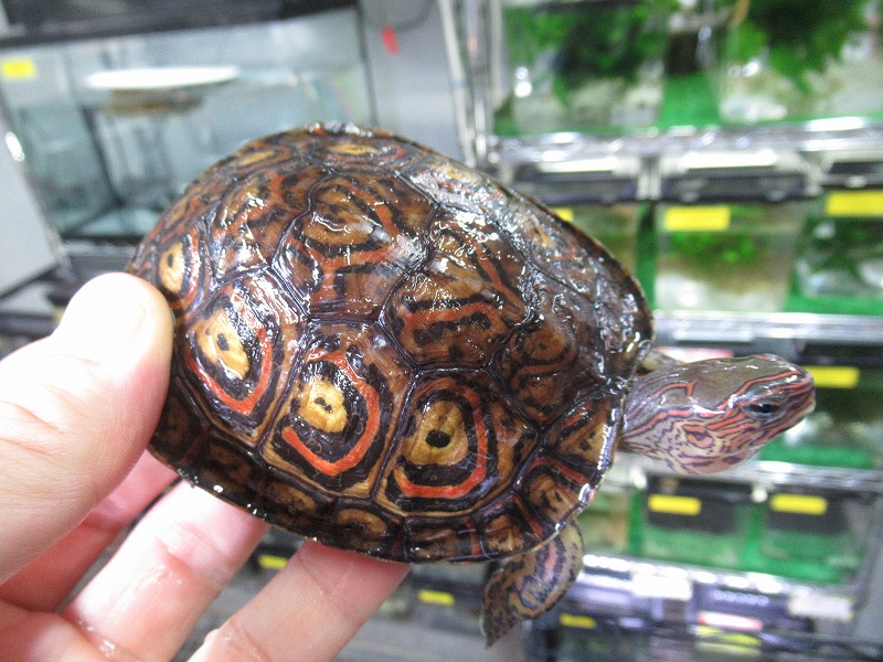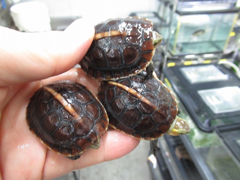 派手派手なマンヤマガメも来てます。チビから少し育った、飼育し始めるには良いサイズ。雌雄は微妙だけどなんとなく分かりそうな感じ。