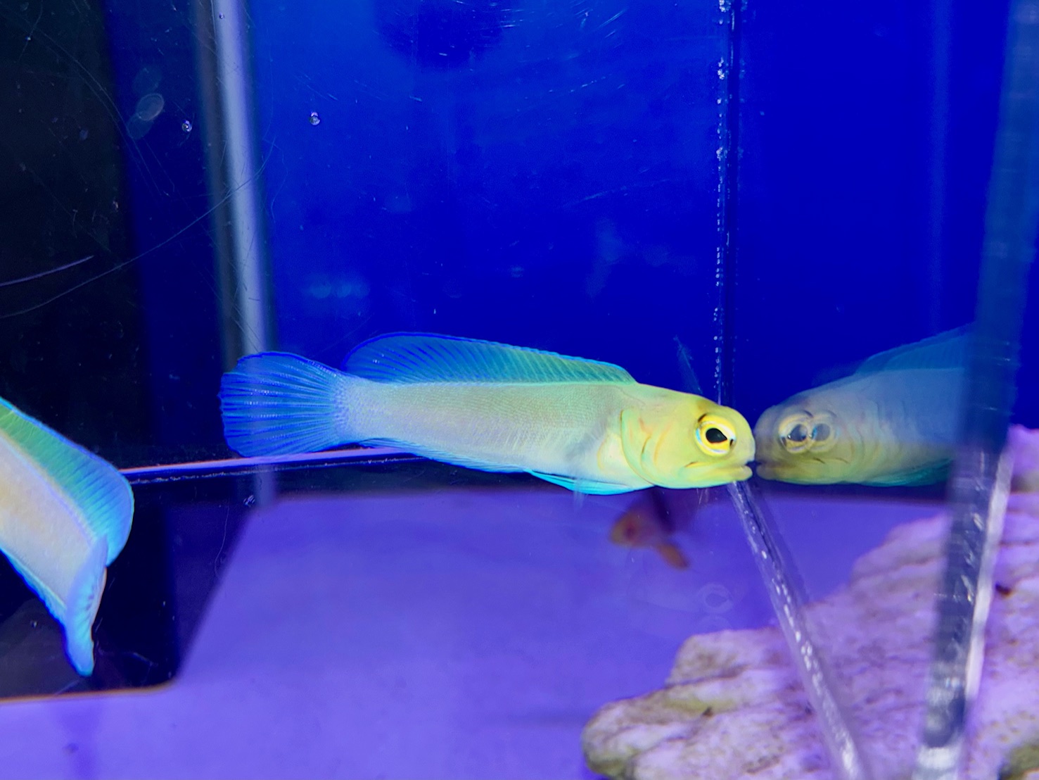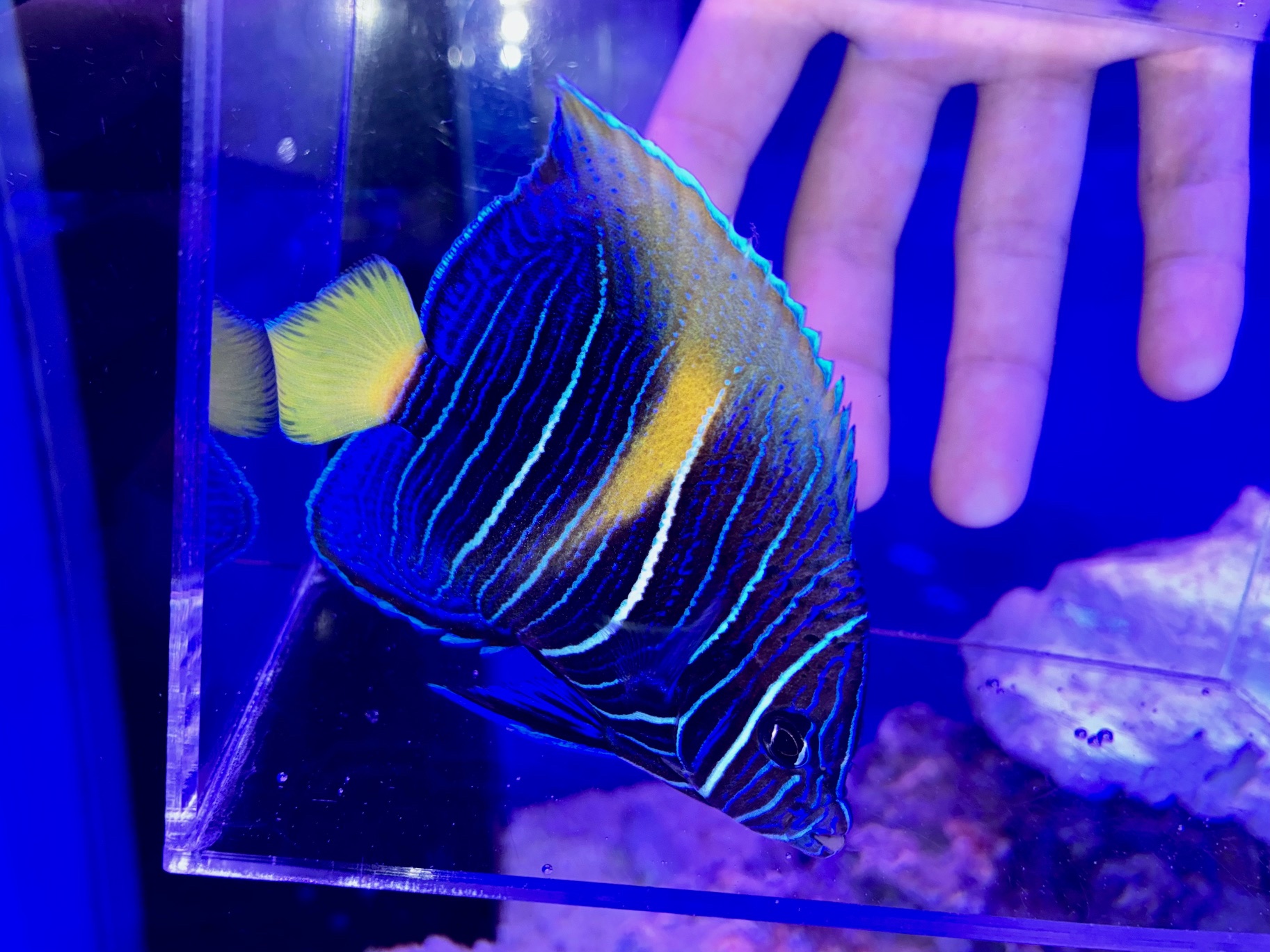 黄色い体色に青いラインが美しい✨️