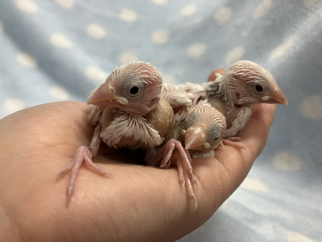 写真ではヒナヒナですが、今は少し育ってフィンチステップも踏めるくらいにはなってきているのでお迎えチャンスかと✨✨