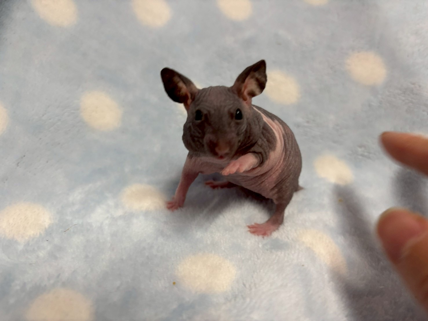 寒さは非常に苦手だったり、目に入るゴミをまつ毛で防げないため目ヤニが出がちだったりとヘアレス特有の悩みこそあるものの日々のお世話の中で試行錯誤していけるので飼育満足度高めなハムちゃんとも言えるでしょう!!