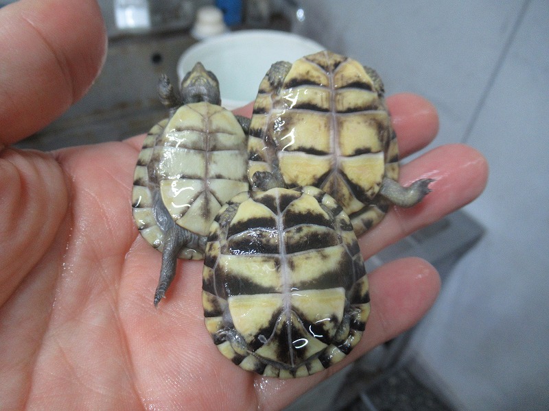 ブリーダーさんから届いたブラック血統も。コチラは皮膚ではなく甲羅の黒みが強い個体たち。腹甲も赤みを帯びてます。