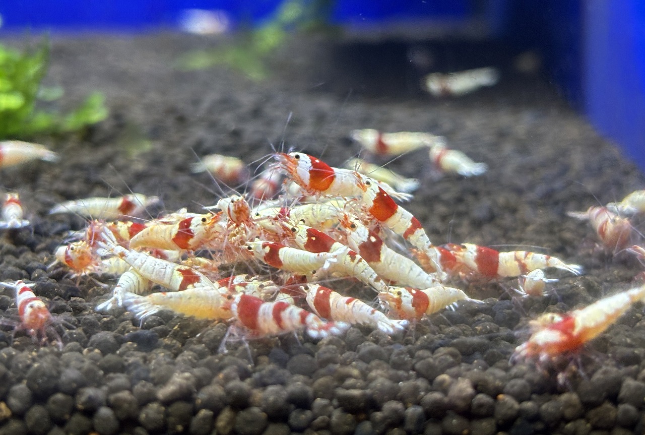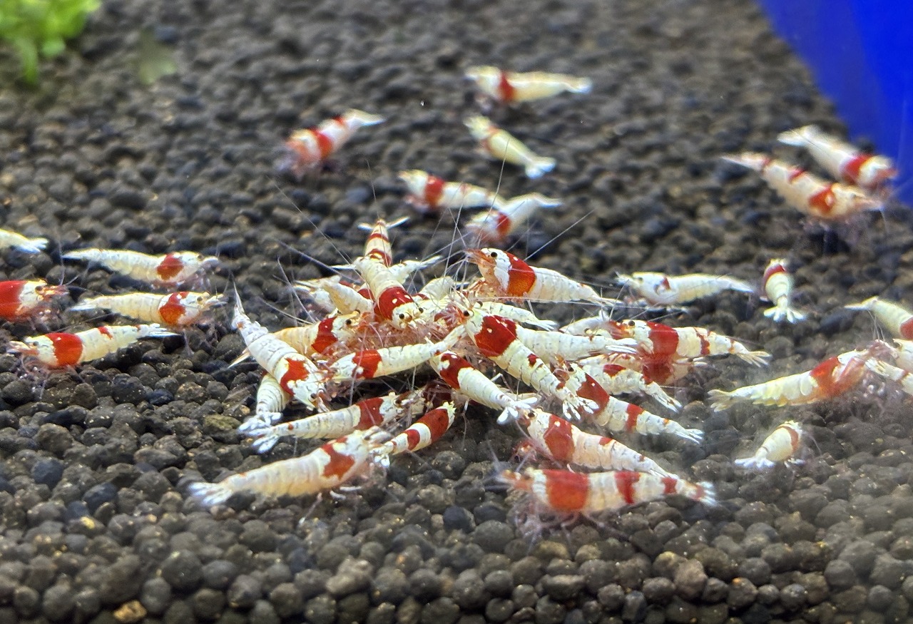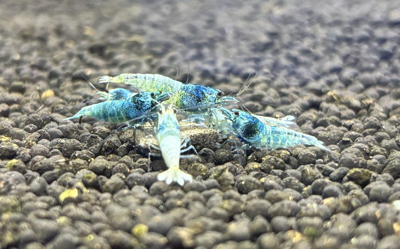 白色の体にターコイズブルーが入る綺麗なシュリンプ。