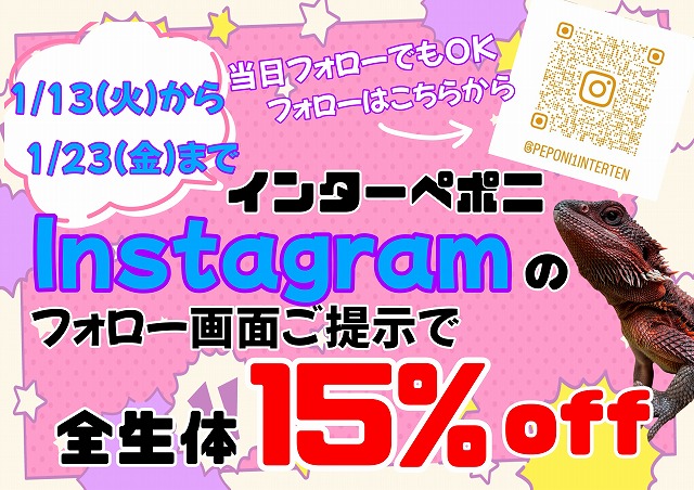 どんな金額の生体も問答無用で15%OFFのフォロワー感謝セールです♪