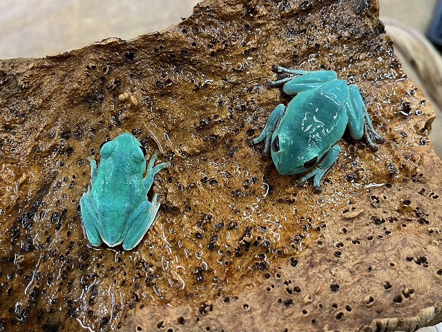 定番種のベトナムコケガエルは緑&黒の体色ですが、