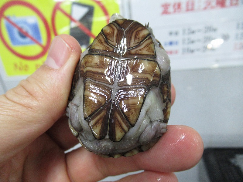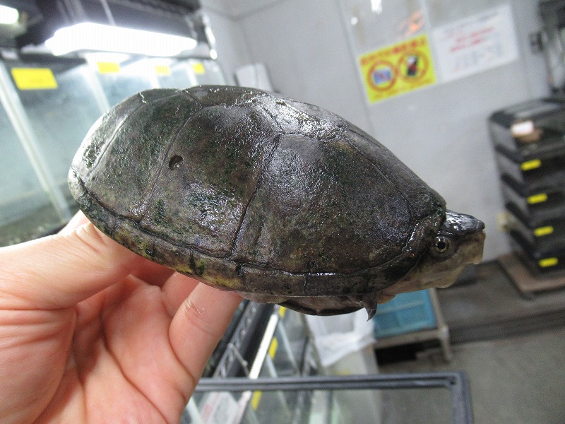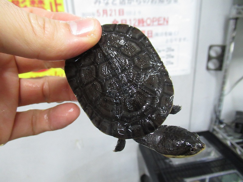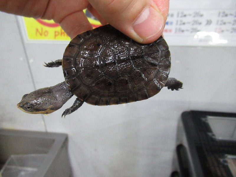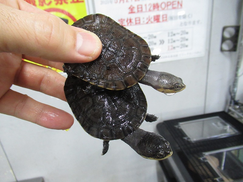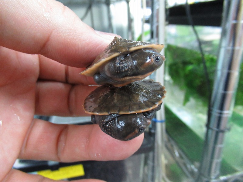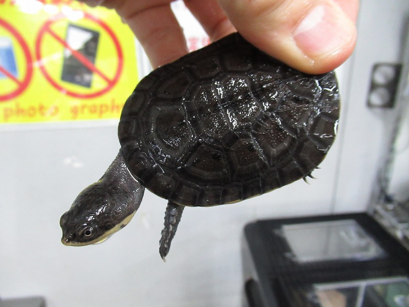 貴重な追加分確保!前回分も含め国内に入ったCB2025は全部で4頭だったようで、そのうちの2頭を確保できました。10年振りの登場!過去に数回扱った個体は全てアダルトだったのでベビーサイズが来るのは初めて。いざ実物を見て、近いとされるコシヒロにphrynops属を混ぜたような独特な雰囲気。昔見た成体は真っ黒な甲羅と頭部にマス目のようにしっかりと筋が入りなんとなく不気味な雰囲気が漂っていたのを覚えています。あのオーラが出るまでどのくらいの年数がかかるか分かりませんがじっくり飼い込んで格好良く仕上げて下さい。