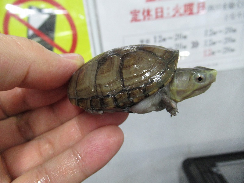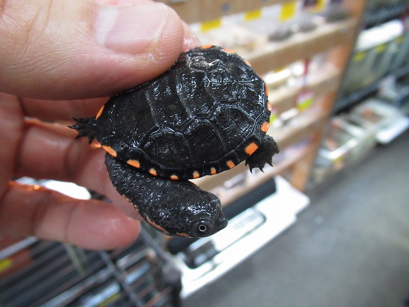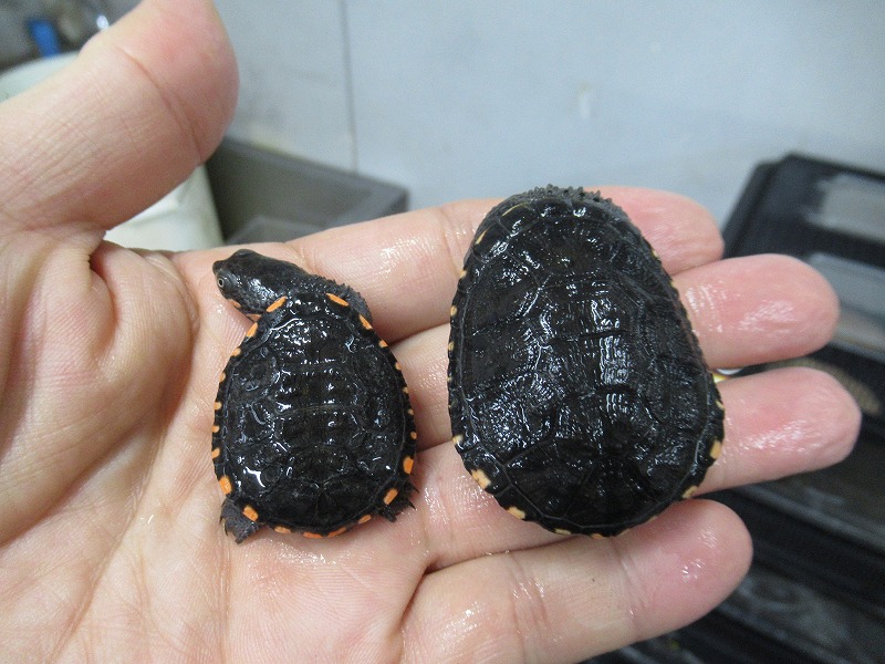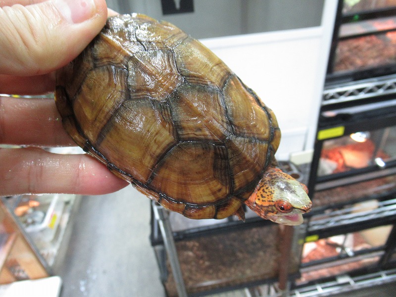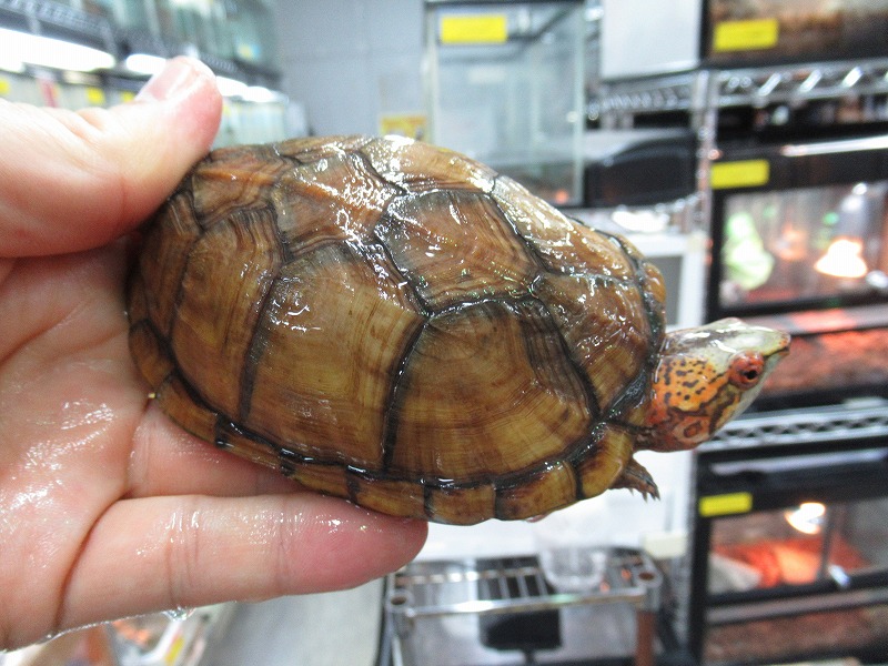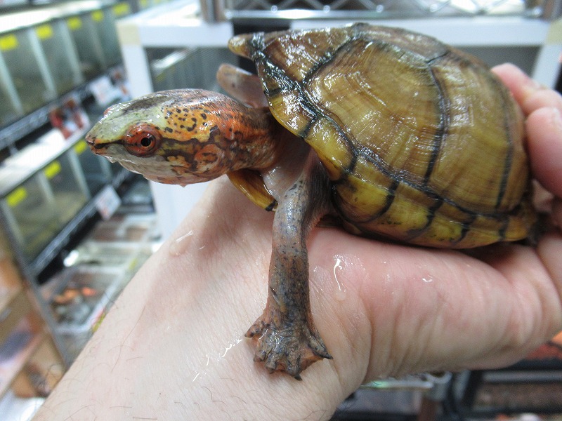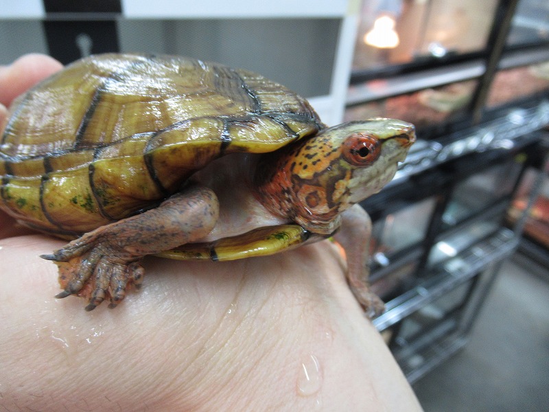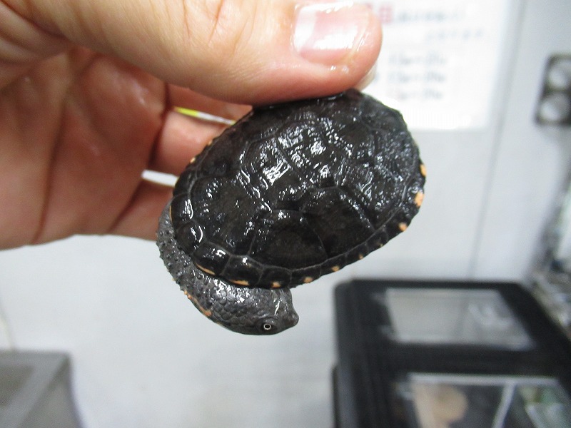 ピカピカなCB個体のオス来てます。頭部の黄色いラインも鮮やか。ミスジドロガメのような滑らかで丸い甲羅も可愛い感じ。