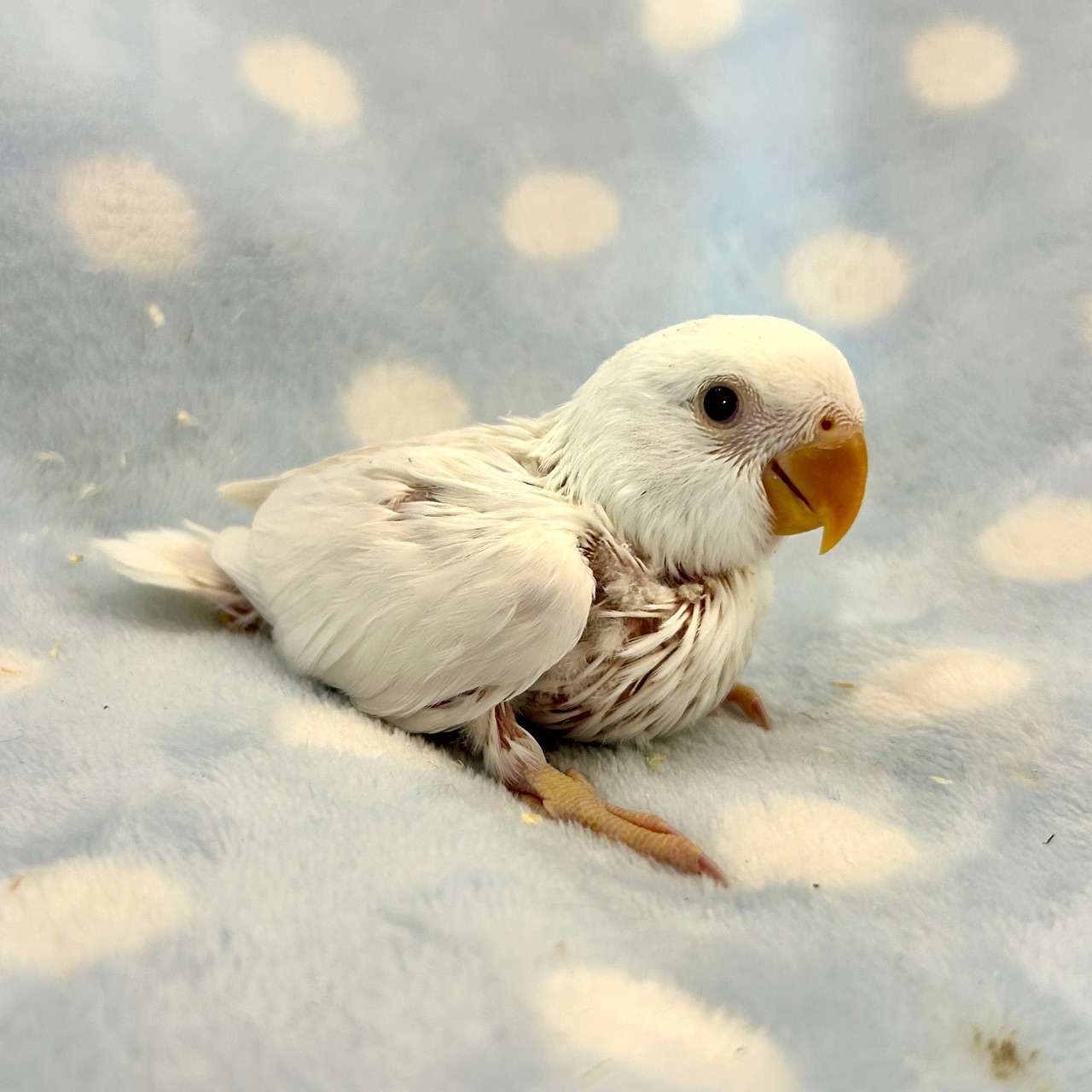 まだまだ寒い季節なのでヒナゆえ保温はしっかりと!ちょっと心配な方はさし餌2回までお預かりできるサービス(有料)もありますのでご安心を!