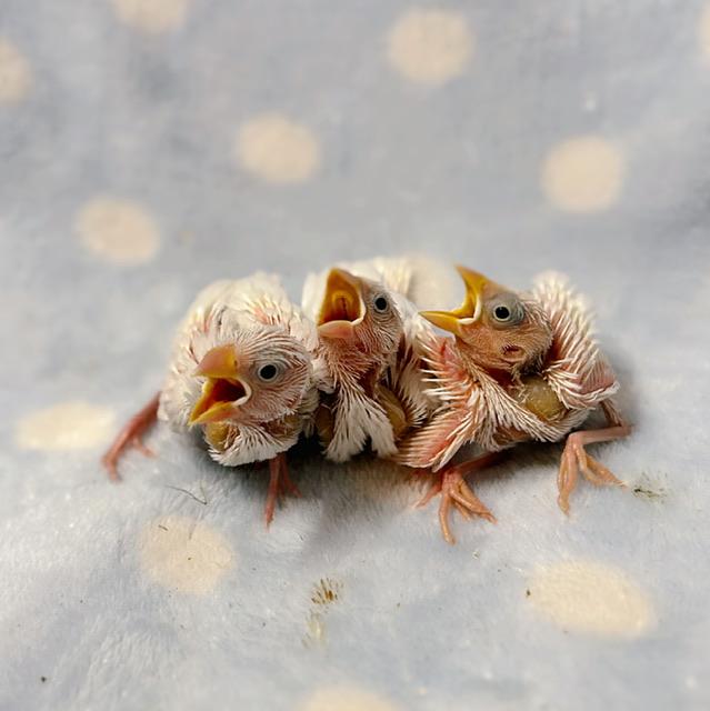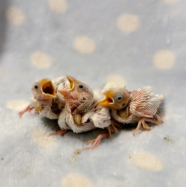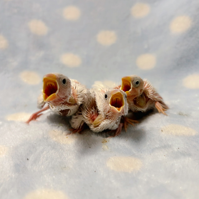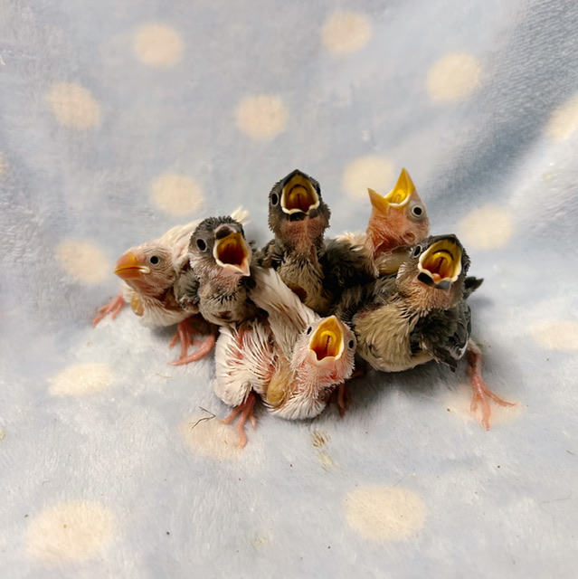 定番カラーの〝桜〟と〝白〟が入荷しております!みんな元気に口あけてさし餌もたっぷりもらっていますよ〜
