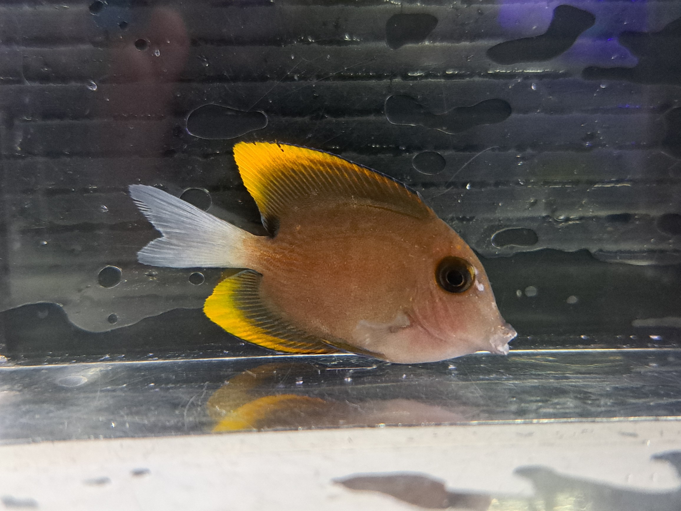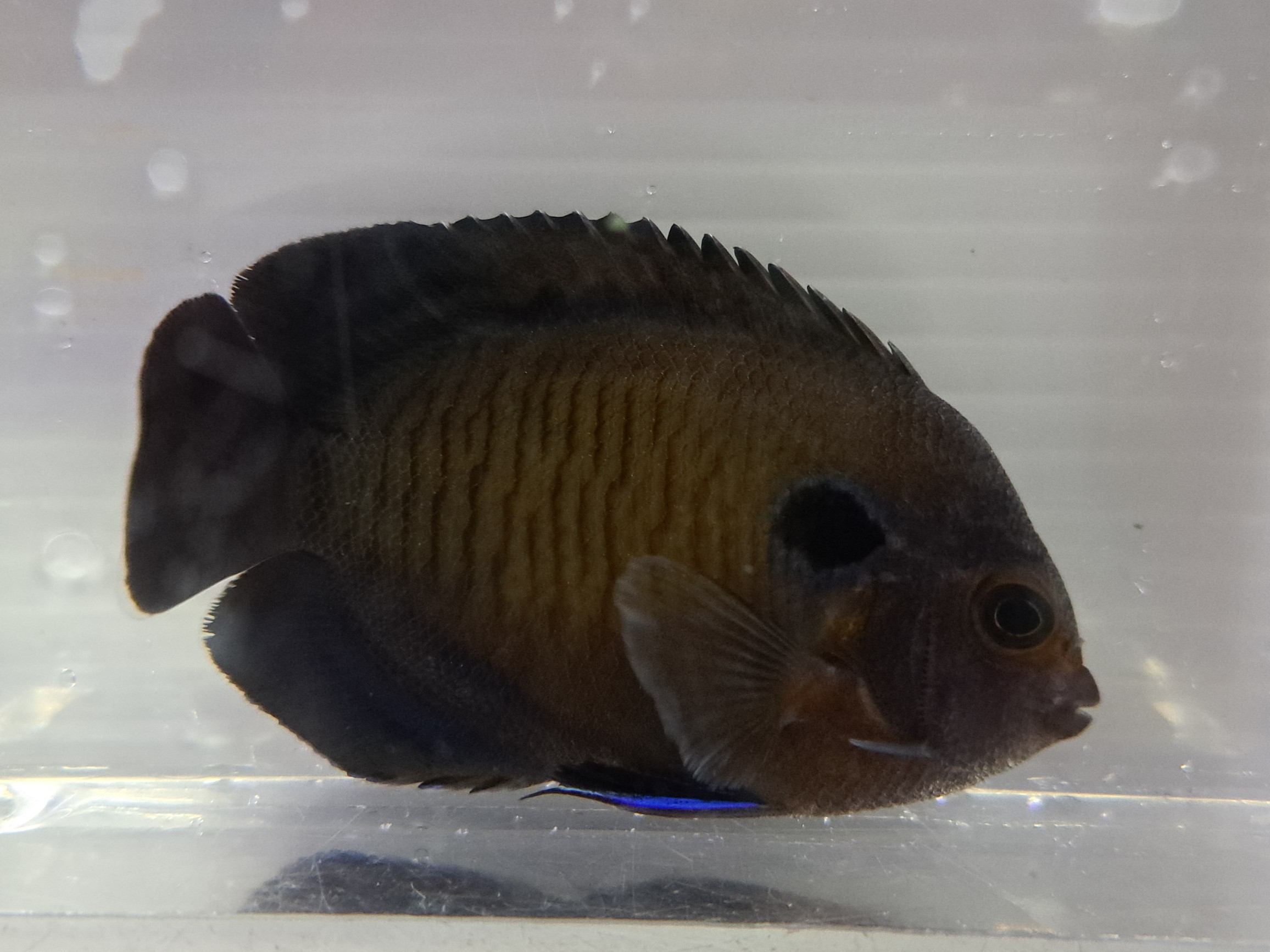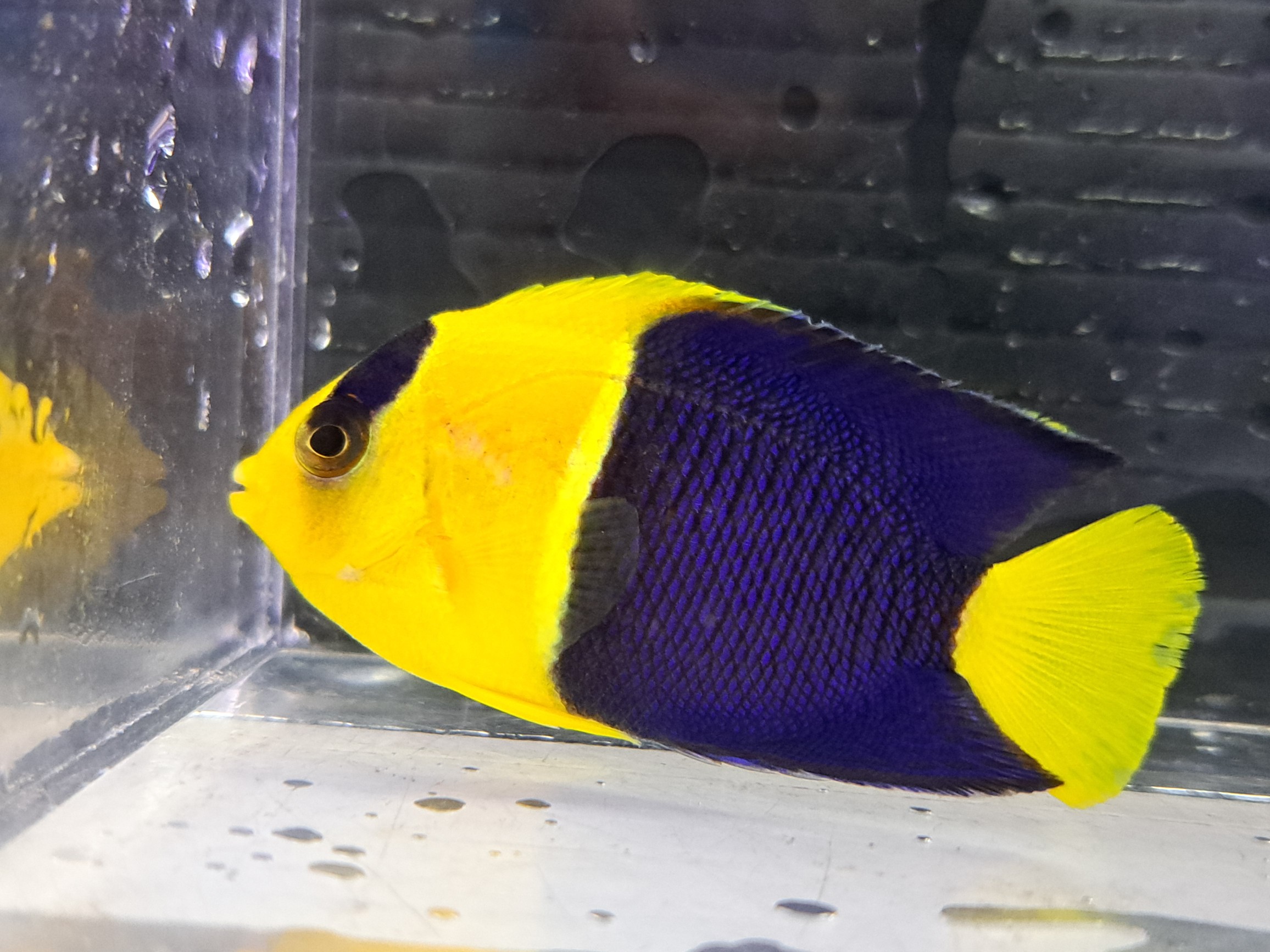 インド洋便で入荷する小型ヤッコ。シックな体色と青い腹びれが魅力的♪