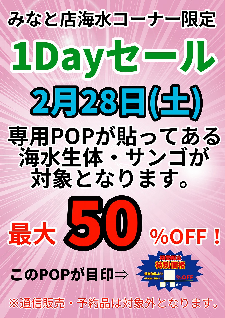 【みなとマリン】1Dayセール❗️