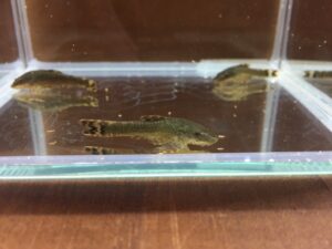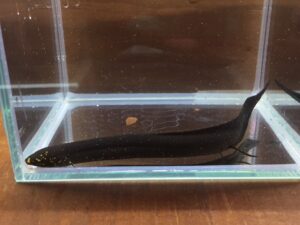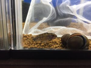 来たー!肺魚最大種エチエチ様。年一くらいしか見ないレアな肺魚。今回は見たことないくらい小さい。2~3㎝くらいしかない。外鰓もまだ残ってます。