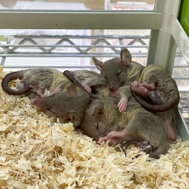 昨今めっきり見かけなくなったユニークな珍獣到着🤩袋を持たない南米有袋類のハイイロジネズミオポッサム‼️エキゾ小動物好きには堪らない種ですよね〜❣️しかも1匹、2匹じゃない、計9匹の大所帯で入荷‼️