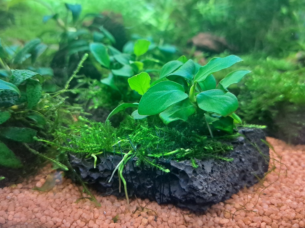 アヌビアス ナナ + ウィーピングモス 溶岩プレート付き