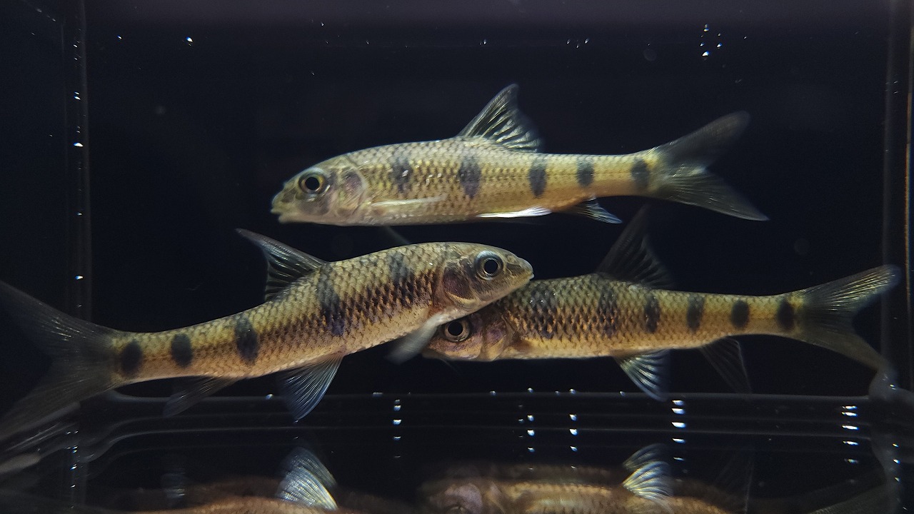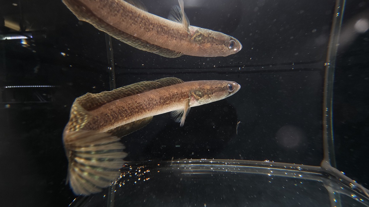 台湾のオイカワ、タカサゴオイカワはもっとゴツいイメージなので、 evolans・・・?正直似ているのでよくわかりませんが、日本のオイカワより全体的に鋭いです。若魚のため雌雄判断は難しいですが、1匹は尻ビレが伸長しているような・・・?成長が楽しみですね!