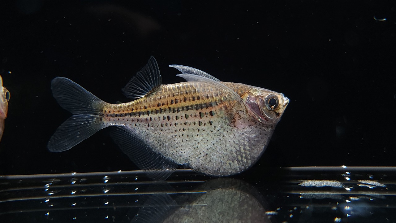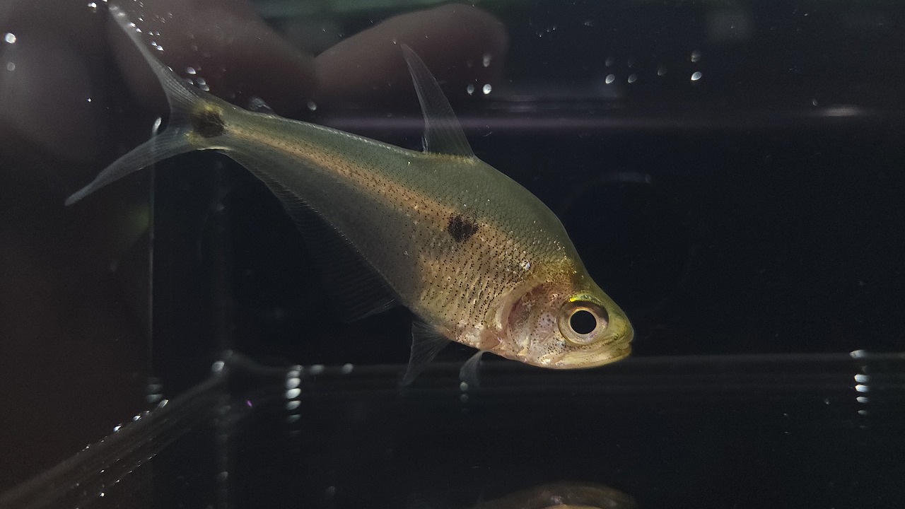 マンボウのようなユニークな姿をしているハチェットの仲間ですが、特大サイズでみるとさらに面白いですね。このサイズだとハチェットの歯や脂ビレが見えるので、やっぱりカラシンなんだなーって改めて感じ取れる思います。