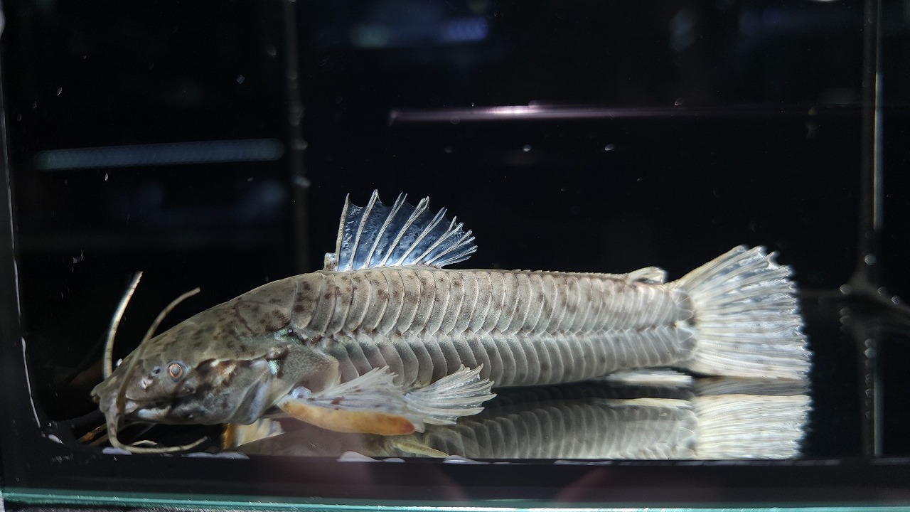 見ての通り色々となが~いのが特徴の銀色鯰。性格は大人しめで、忙しなく動くタイプではなく、かといって隠れて全く動かないタイプでもない、優雅に泳ぐというかなり理想的なナマズではないでしょうか。サイズも最大40cmほどと大きすぎず、お値段も4桁と導入は現実的なところもポイント。入荷はたま~に来るぐらいななので、いる時が買い時です!