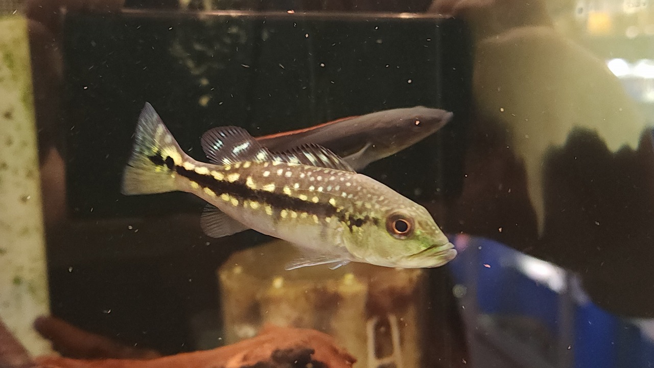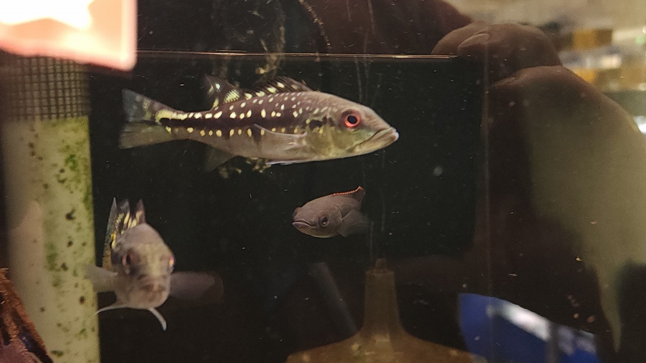 大きくなると顎から腹にかけて真っ赤に染まる、かっこよくも美しいアイスポットシクリッド。ワイルドは非常に高価で10万円前後のイメージですが、今回はブリードのため超お値打ち!人工餌もバクバク食べるので育つのが非常に楽しみな子たちです。2匹のみ。