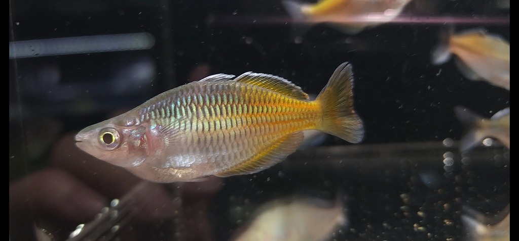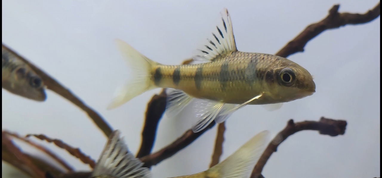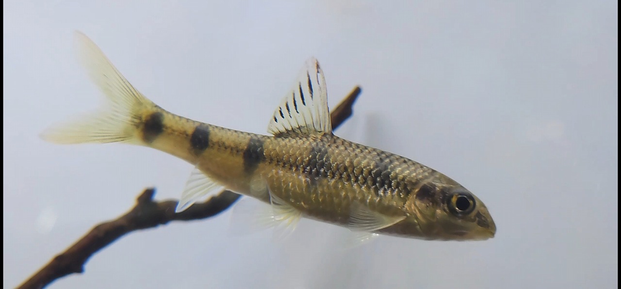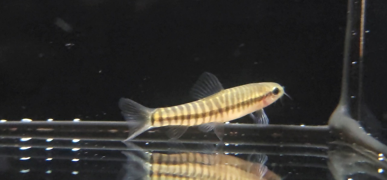 上記の名前で入荷したハナマガリの仲間。 赤くなるのはfasciatusというよりかは、背びれをみる感じだとこの子は恐らくbeijiangensisと思われます。beijiangensisはほんのり赤みを帯びますが、メインは黄金色に輝く体がチャームポイント。意外と上流域に生息しているようで、タニノボリのいるような急流にも生息しているとか。