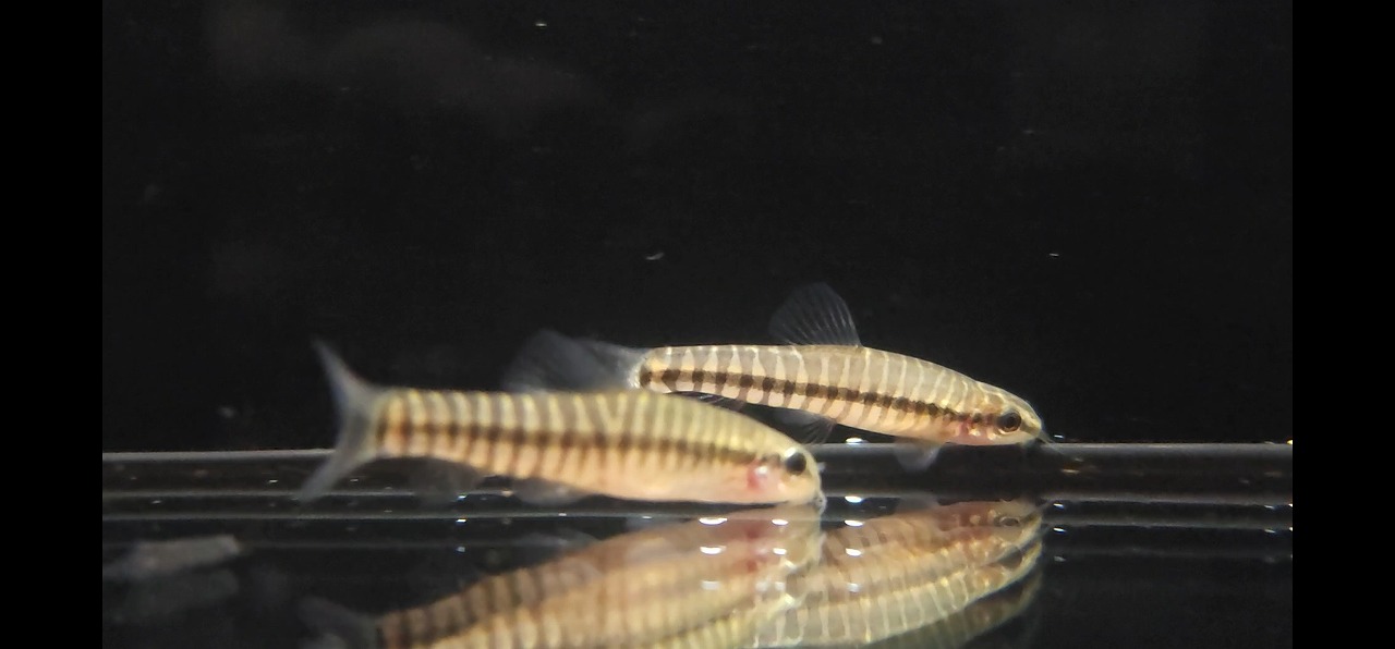 ニョロくないドジョウの仲間。ピグミーマルチストライプローチに近縁で、5cm前後の小型種。コリドラスなどの底層魚よりちょっと上くらいをちょこちょこと泳ぐので、意外と存在感を示してくれます。性格も温和で人工餌OK、混泳の追加にいかがでしょうか。残り2匹。