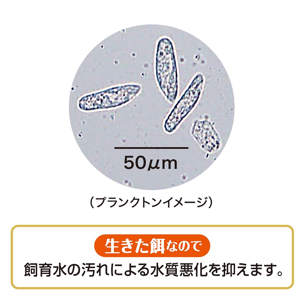 また、生きた餌なので飼育水の汚れによる水質悪化を抑えます。