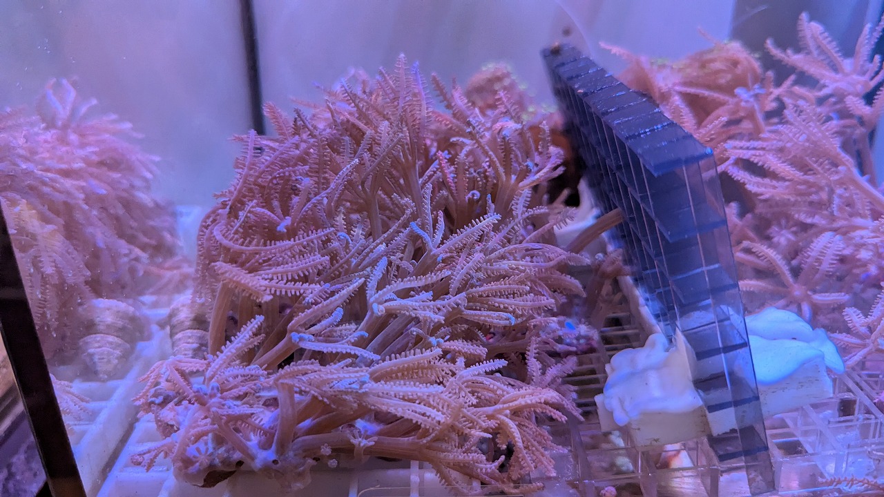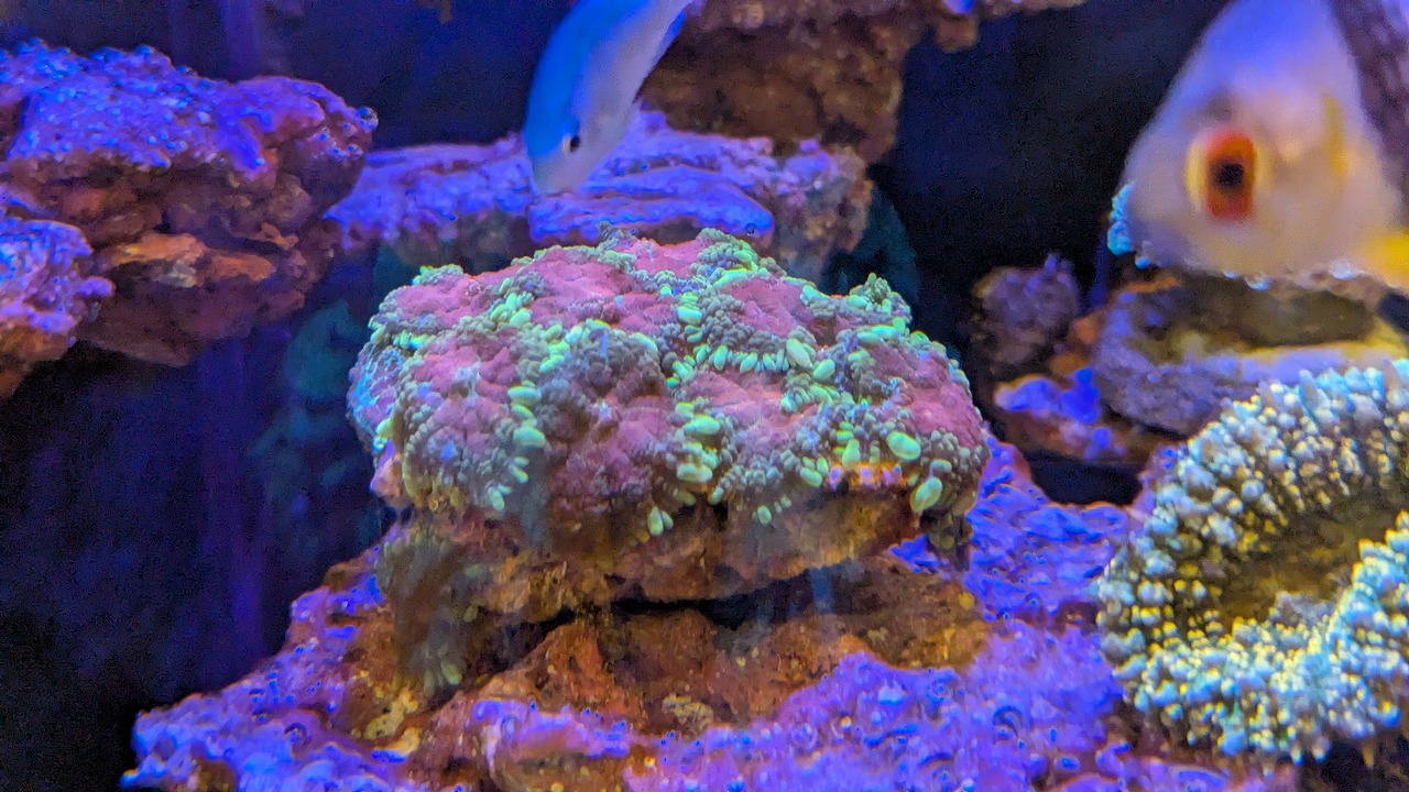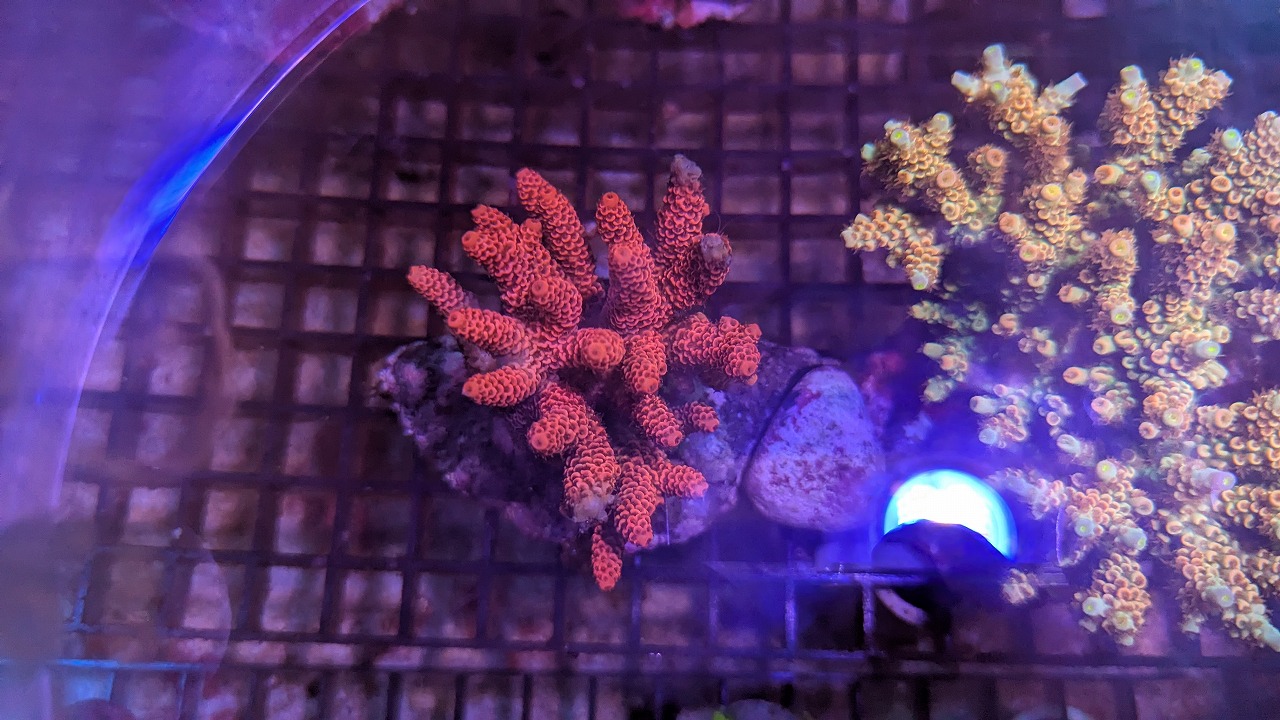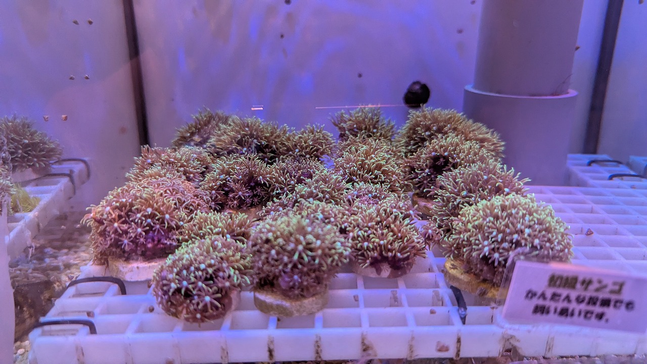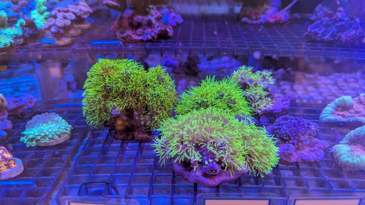 肉眼で見ると、ポリプ粒の縁が蛍光色でミステリアスな感じ↓