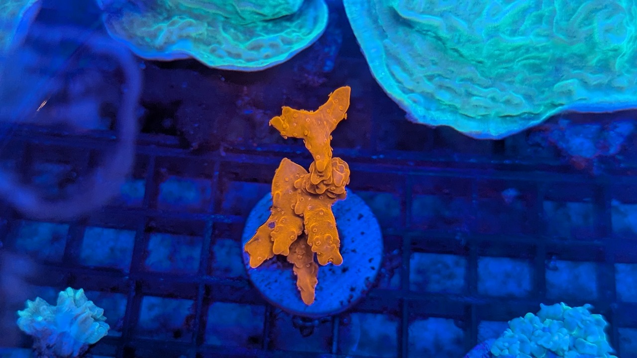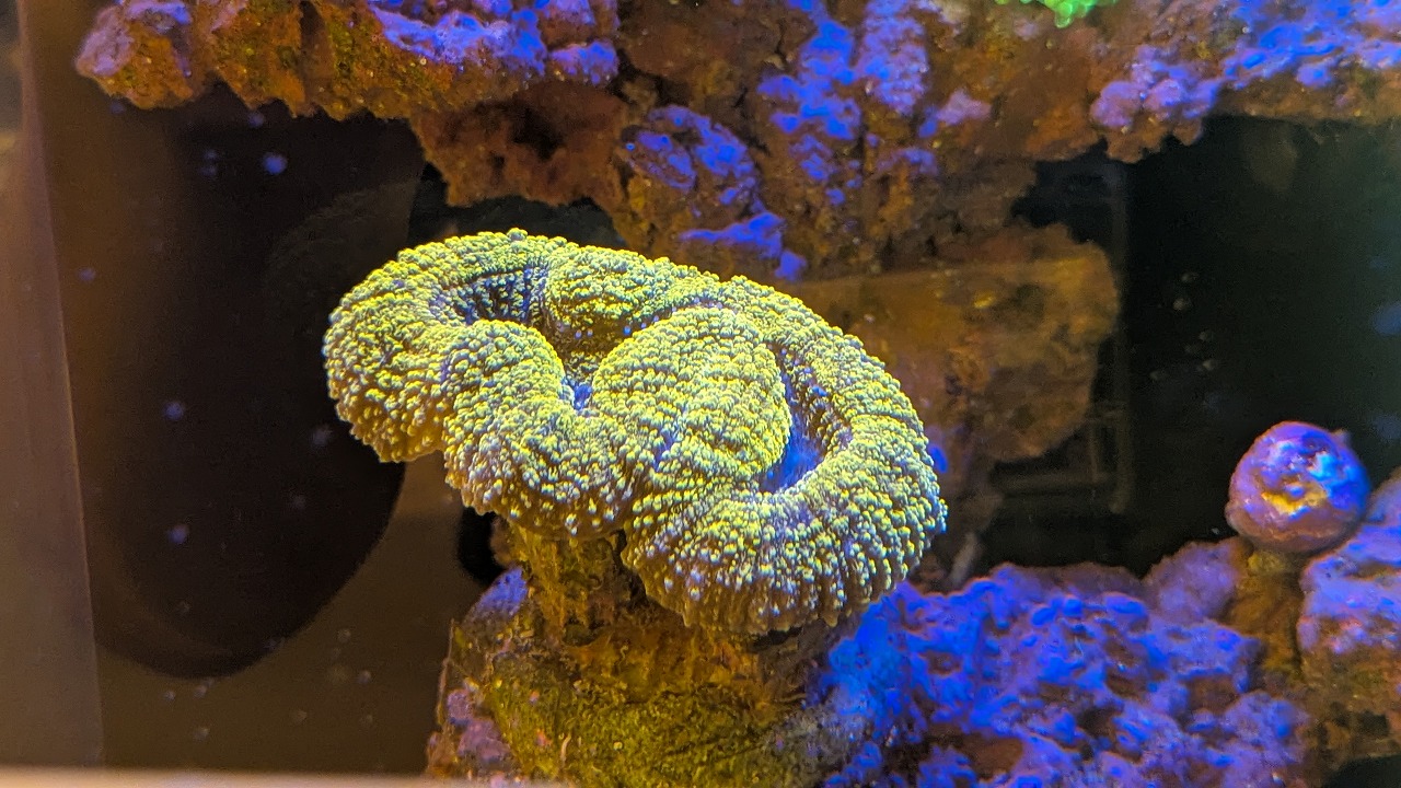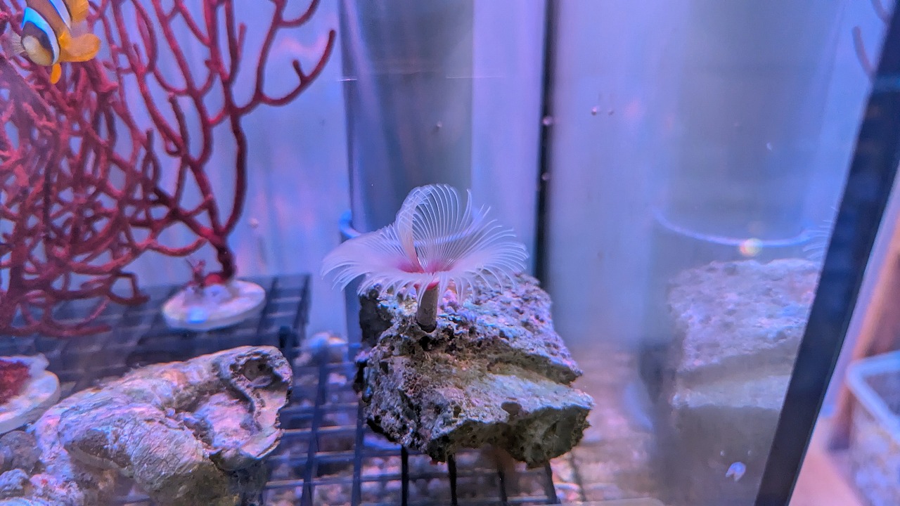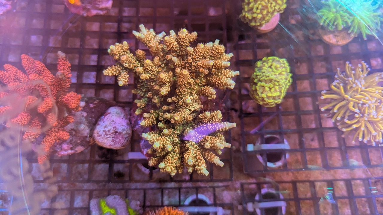 肉眼で見ると、ポリプ粒の縁が蛍光色でミステリアスな感じ↓