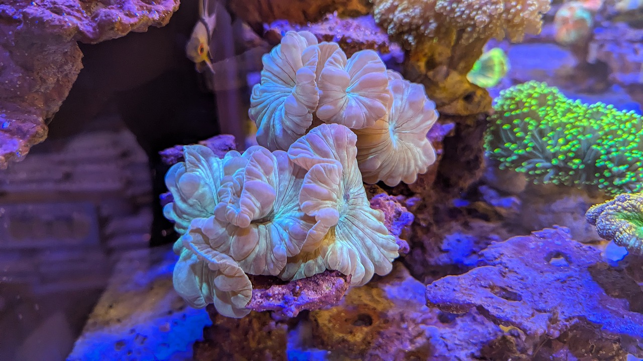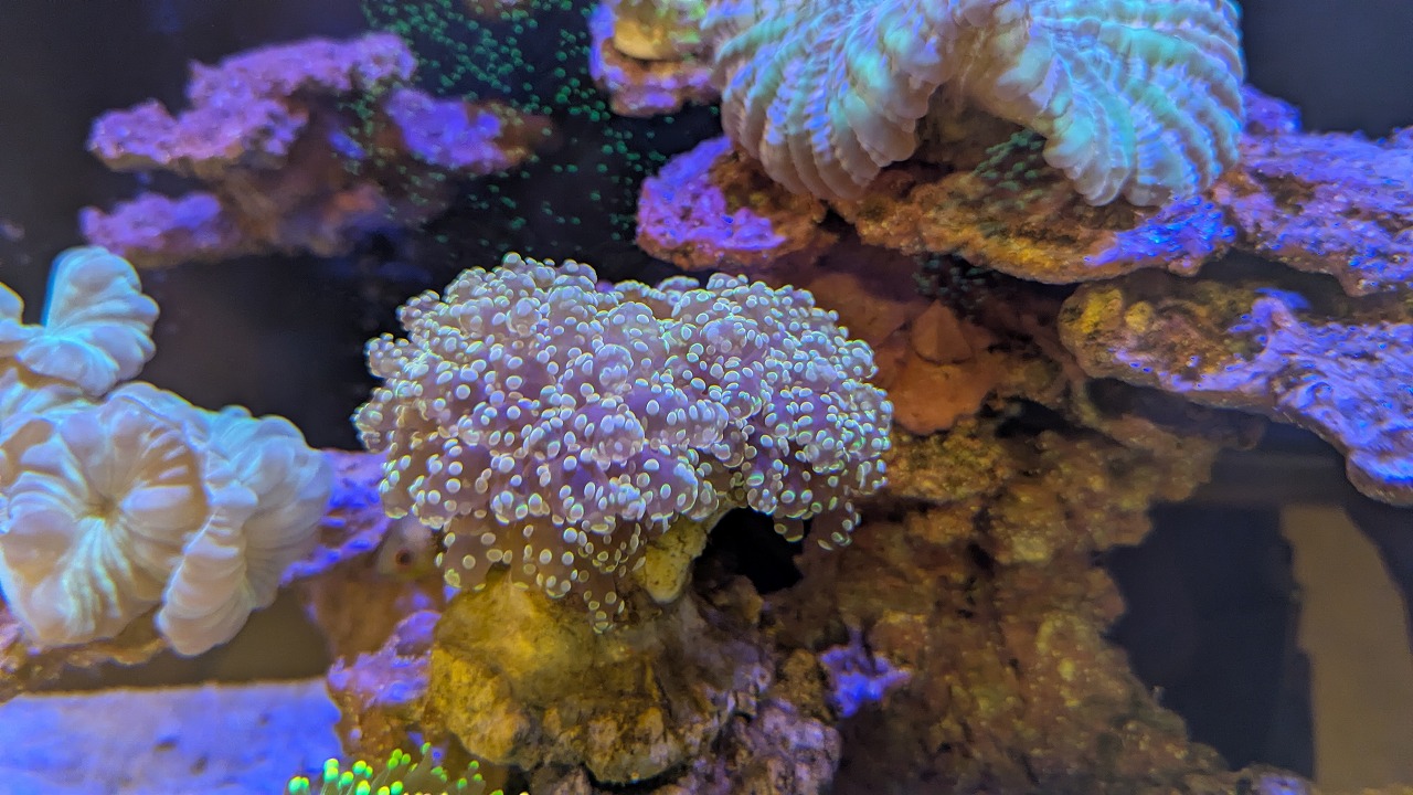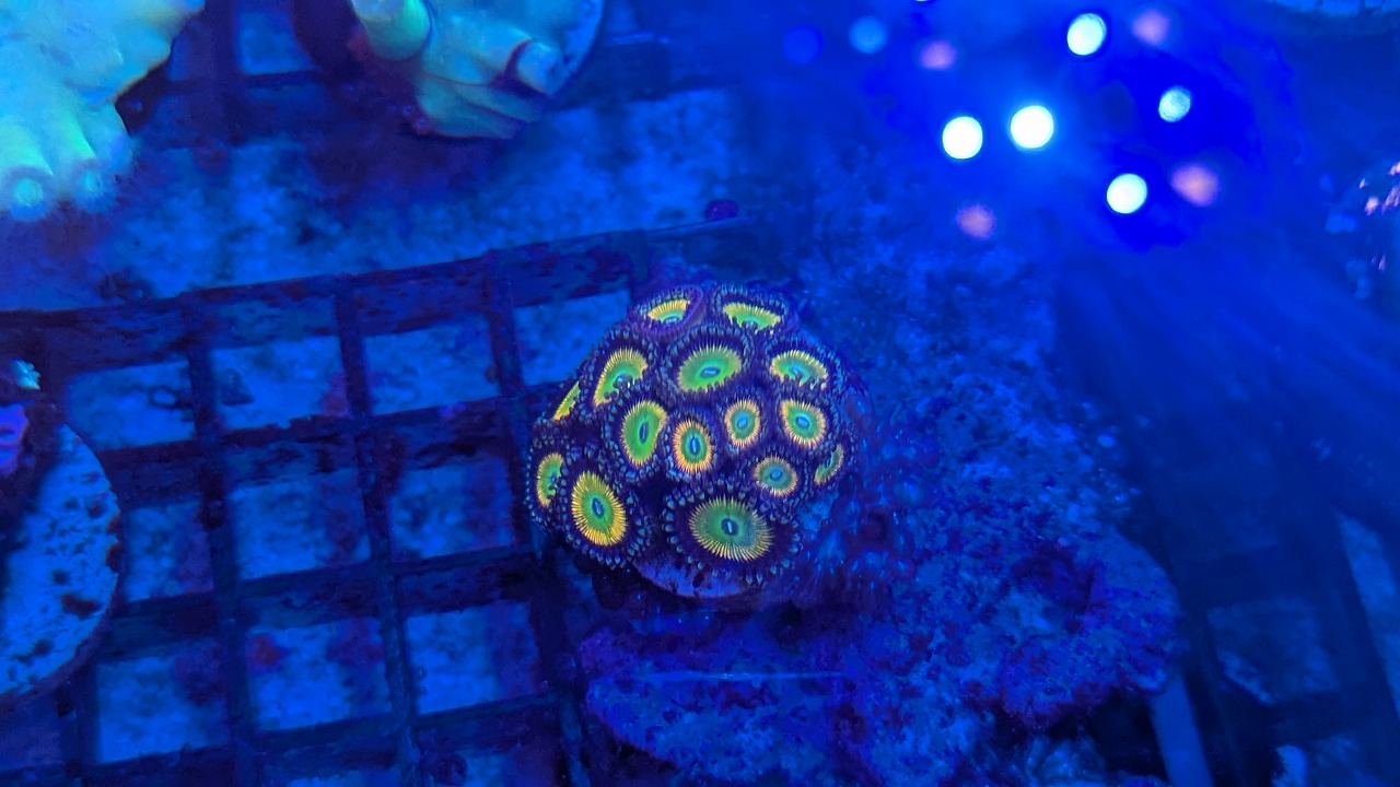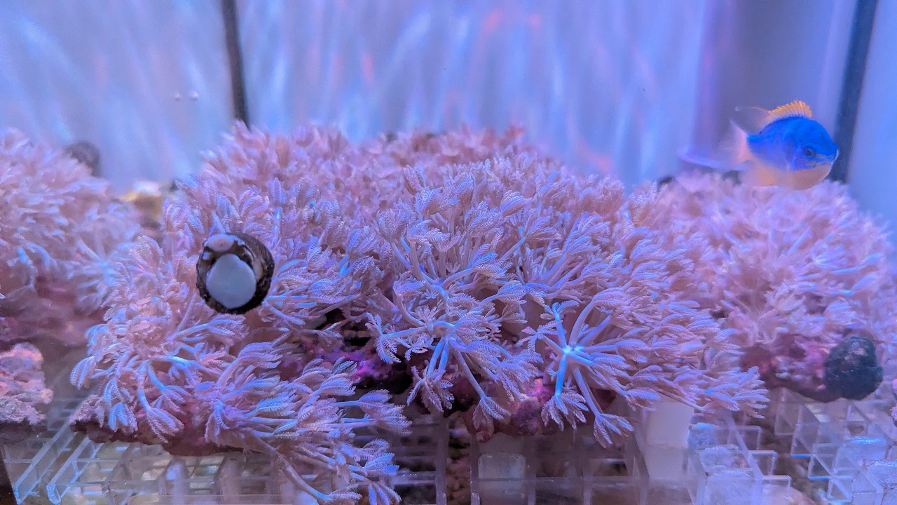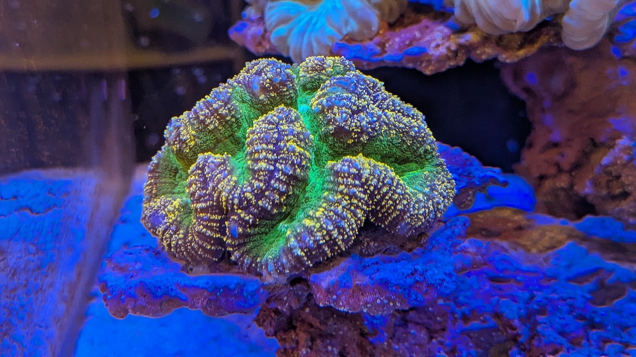 肉眼で見ると、ポリプ粒の縁が蛍光色でミステリアスな感じ↓